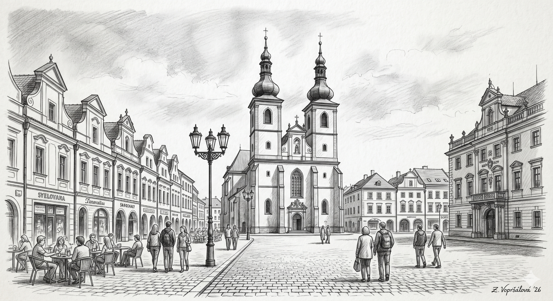 - Kostel Nanebevzetí Panny Marie: Dominanta Resselova náměstí s nezaměnitelným dvouvěžím.